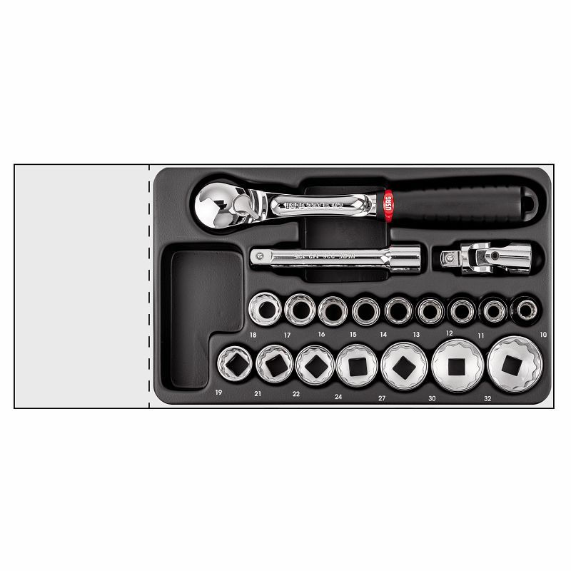 Moduli in termoformato e spugna bicolore per organizzare gli utensili nei carrelli 519 RACING.